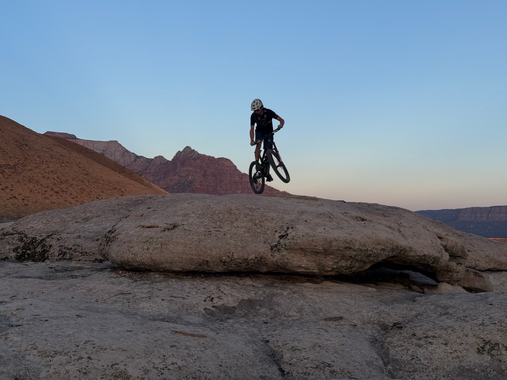 Gooseberry is a slickrock wonderland. The trails wind across massive sandstone slabs, through juniper forests, and along mesa edges with insane views of Zion’s cliffs. It’s not about big mileage here—it’s about big fun. The ride constantly challenges you with quick ups and downs, rock rolls, and line choices that keep you focused.
